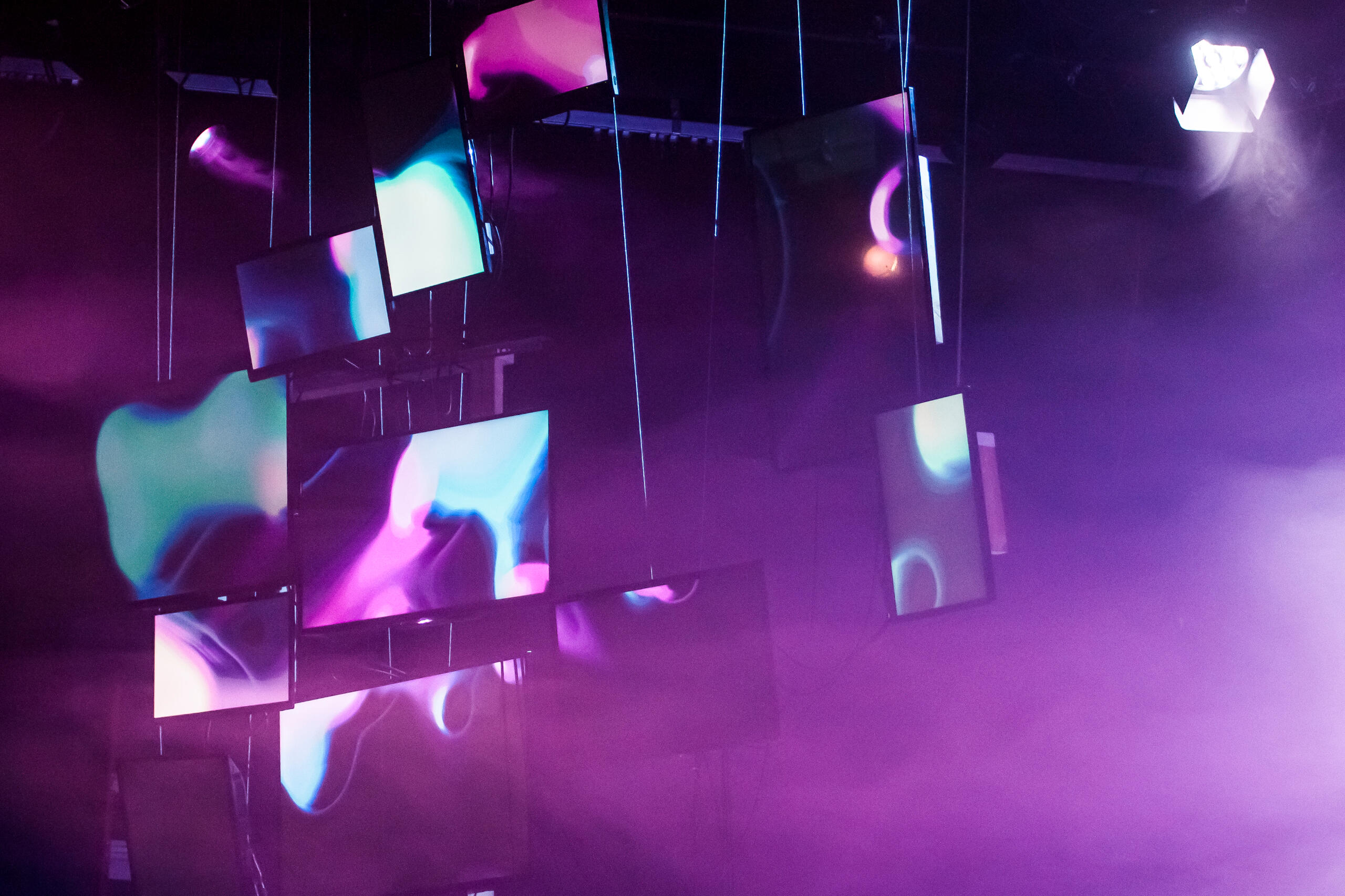 Initially expected 'specifications' for the show were fairly ambitious considering the context. Our video designer for the show (Ian Jackson) anticipated drenching the show's physical reality in projected video, but in addition to this, deploying the means of content consumption we typically find in physical reality: phones and laptops, but most importantly, televisions. You can see where we landed with these concepts, though knew from the beginning of our process that typical theatrical visual tools (Namely, Qlab as a video tool) would be severely challenged to meet both our aesthetic and performance requirements.